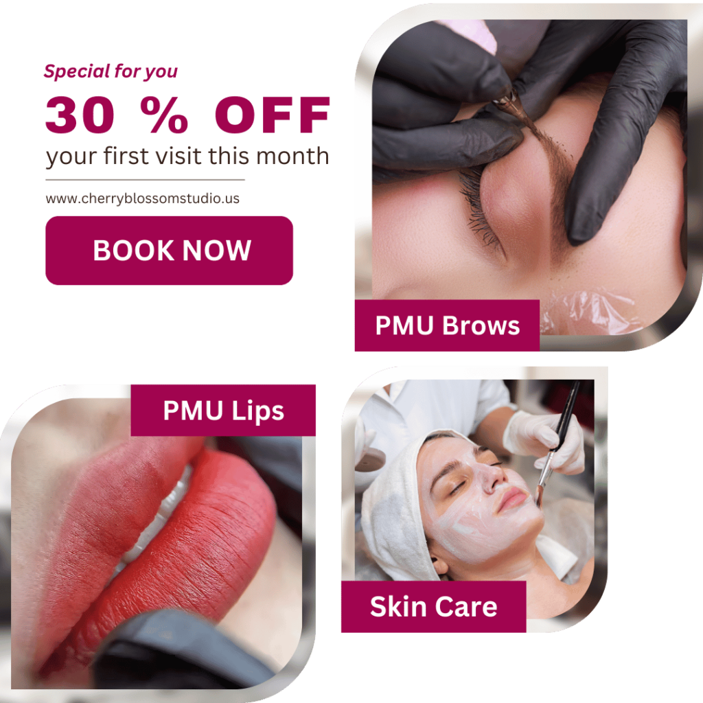 This month, new clients receive up to 30% OFF selected PMU and skincare services — a perfect way to experience the soft, natural beauty Cherry Blossom Beauty is known for.